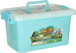 Enthalten ist eine Kunststoffbox mit Deckel und Griff. Sie sorgt für Ordnung, erleichtert das Aufräumen und ermöglicht, das ganze Set überallhin mitzunehmen.