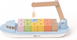 Entdecken Sie das unterhaltsame Holzschiff von Classic World mit magnetischen Blöcken, das Kinder mit Hilfe eines beweglichen Krans be- und entladen können. Die farbigen Teile fördern Feinmotorik, Kreativität und Konzentration, während die sichere Ausführung ohne scharfe Kanten unbeschwertes Spielen garantiert.