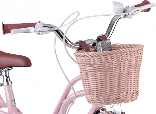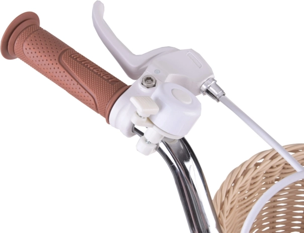 Der Retro-Look wird durch einen geflochtenen Korb, braune Details und einen Kettenkasten mit Schwanenflügel-Motiv abgerundet. Für bessere Sichtbarkeit ist das Fahrrad mit Reflektoren vorne, hinten und in den Rädern, Schutzblechen und einer Klingel ausgestattet. Ebenfalls enthalten sind eine Führungsstange für Eltern und breit stehende Stützräder für maximale Stabilität.