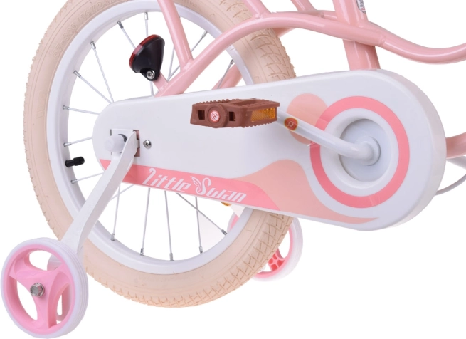 Das zauberhaft stilvolle Kinderfahrrad ROYALBABY Little Swan 14" im Retro-Design vereint Sicherheit, Komfort und robuste Konstruktion. Der leichte Rahmen in zartem Rosa mit Perlmuttglanz, Stützrädern, vorderem Korb und ergonomischen Details ist ideal für die ersten Fahrten kleiner Radfahrerinnen.
