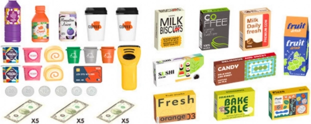 Unser Kindersupermarkt ist mit einer Kasse mit Licht- und Soundeffekten ausgestattet, die mit Batterien betrieben wird und das Spiel noch realistischer und spannender macht. Die aufklappbaren Regale sind ideal zum Aufbewahren und Präsentieren der Waren, die Ihr Kind selbstständig nach seinen Vorstellungen anordnen kann – so werden organisatorische Fähigkeiten gefördert. Das Set enthält verschiedene Produkte, wie man sie in einem echten Geschäft findet – von frischem Obst bis zu Alltagslebensmitteln. Der Scanner wird ebenfalls mit Batterien betrieben und verfügt über Licht- und Soundeffekte, sodass Kinder Produkte scannen und einen echten Einkauf simulieren können.