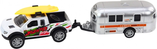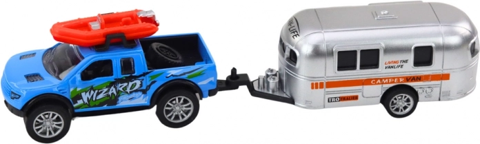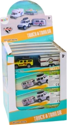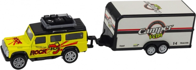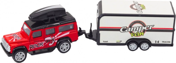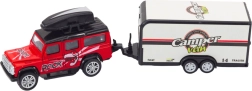Dieses Geländewagen mit Wohnwagenanhänger ist entworfen, um kreatives Spielen voller Abenteuer zu fördern. Das Auto ist mit einem Schwungradantrieb ausgestattet, was bedeutet, dass es sich leicht bewegt und stundenlangen Spaß bietet, während der Wohnwagen Elemente der Fantasie hinzufügt.