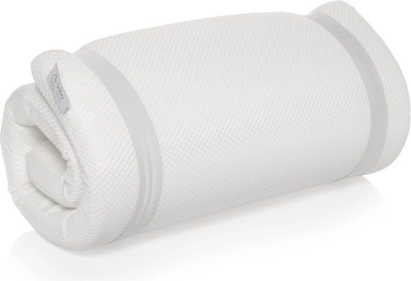 Aufrollbare Matratze, ideal für Reisen. Der Bezug ist abnehmbar und maschinenwaschbar.