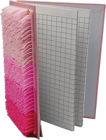 Entdecken Sie ein originelles Notizbuch, das Praktikabilität und verspieltes Design vereint. Schimmerndes rosafarbenes Ombre mit weichen TPR-Fransen schafft eine sensorische Oberfläche, die den Tastsinn stimuliert und hilft, Spannungen abzubauen. Die Spiralbindung ermöglicht es, das Notizbuch vollständig zu öffnen und auf beiden Seiten bequem zu schreiben.