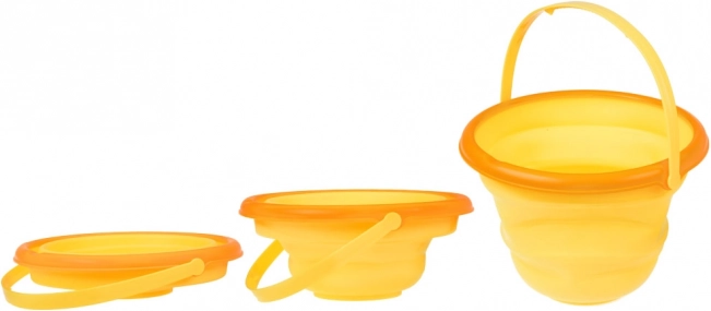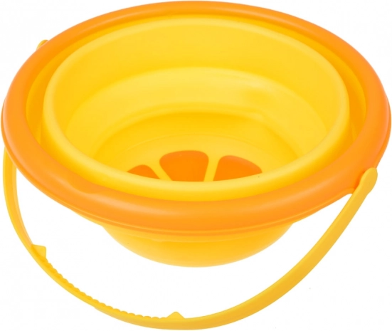 Keine sperrigen Eimer mehr im Auto. Diesen faltbaren Eimer aus weichem Silikon und Kunststoff falten Sie in Sekunden flach und genauso schnell wieder auf. Dank des bequemen Griffs lässt er sich leicht tragen, und die leuchtende Zitronenfarbe begeistert Kinder.