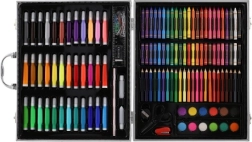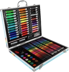 150 Stück verschiedene künstlerische Utensilien, einschließlich Marker, Buntstifte und Farben, die sorgfältig organisiert sind, um einfachen Zugriff für kreatives Schaffen zu ermöglichen.
