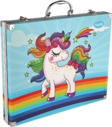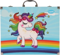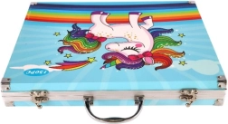 Dieses Köfferchen besticht durch sein fröhliches Design mit einem Einhorn samt Regenbogenmähne und -schwanz und ist daher ideal für kleine Künstler.