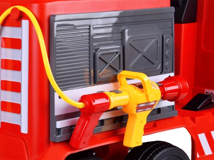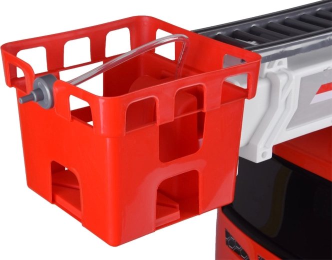 Einsatz wie bei echten Feuerwehrleuten: Steuern Sie die Leiter per Hebel nach oben/unten und aktivieren Sie die Spritze per Knopf. Der hintere Wassertank mit Gurten liefert Wasser für lange Einsätze.