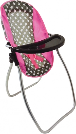 Schaukel und Hochstuhl für Puppen Alice mit Sternenmuster, grau-rosa