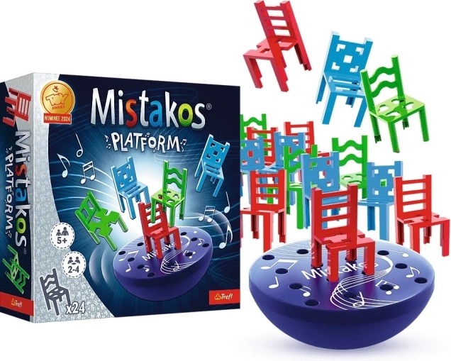Erleben Sie Spannung und Spaß mit der Familie dank des Spiels Mistakos Platform von der Marke Trefl. Diese elektronische Plattform fordert Sie heraus, Ihre Reflexe und Geschicklichkeit in einem spannenden Wettlaufspiel zu verbessern! Ihre Aufgabe ist es, alle Ihre Stühle schneller auf die Plattform zu stellen als Ihre Gegner.