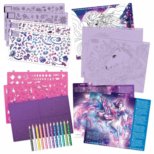 Entdecken Sie die Magie des kreativen Gestaltens mit den Nebulous Stars Ausmalbüchern in Violett. Dieses umfangreich ausgestattete Set bietet alles für zauberhafte Fantasy-Pferdezeichnungen – von Aufklebern und Schablonen bis hin zu Kunststoffformen und Buntstiften. Ideal für Kinder ab 7 Jahren, die Fantasie, Farben und präzise Details lieben. Erschaffen Sie Ihre eigenen Sternengeschichten und fördern Sie Feinmotorik und Vorstellungskraft dank 250 Aufklebern, 80 Schablonen und 12 Buntstiften in einem Paket.