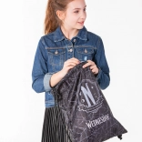 Dank der stabilen Kordeln lässt sich der Beutel einfach zusammenziehen und wie ein leichter Rucksack tragen.