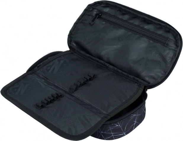 Dank der smarten Innenaufteilung haben Sie Bleistifte, Stifte, Radierer und kleine Accessoires stets übersichtlich geordnet. Stilvolle Details und das tiefschwarze Design mit Nevermore-Motiv ergänzen Ihre Schulausstattung perfekt.