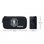 Das schwarze Etui mit Emblem und dem Schriftzug Wednesday besticht durch sein originelles Erscheinungsbild und sorgfältige Details, die Ihren Stil in der Schule und unterwegs unterstreichen.