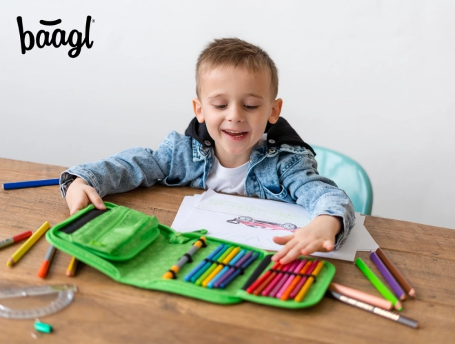 • Klassisches einlagiges Schulmäppchen mit zwei Klappen.