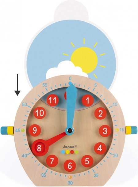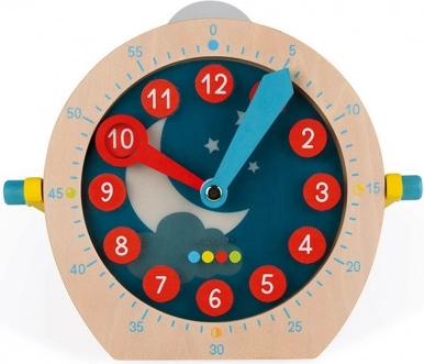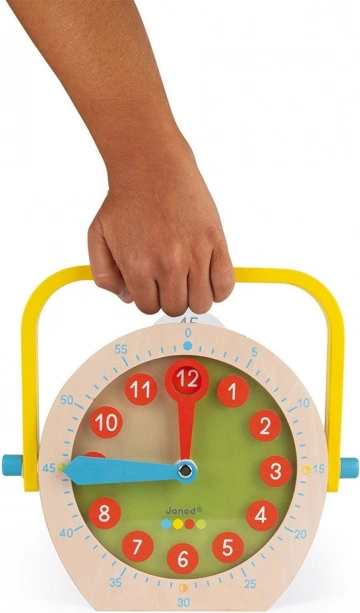 Die JANOD Holz-Lernuhr hilft Kindern schnell und mit Freude zu verstehen, wie spät es ist. Das große Ziffernblatt mit gut lesbaren Zahlen und farbigen Zeigern führt Kinder Schritt für Schritt zum Zeitverständnis – ob volle Stunden, halbe Stunden oder Minuten geübt werden.
