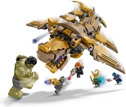 Dieses LEGO Marvel Avengers Set enthält vier Minifiguren – Captain America mit Schild, Schwarze Witwe mit Blaster, Loki mit Umhang und Helm sowie einen Chitauri-Krieger mit Laserwaffe – sowie eine große Hulk-Figur. Das Haupt-Highlight ist der baubare Leviathan mit sechs beweglichen Flossen, aufklappbarem Maul und einem Kopf, der sich leicht drehen lässt. Er ist mit transparenten Ständern für realistische Spielszenen ausgestattet.