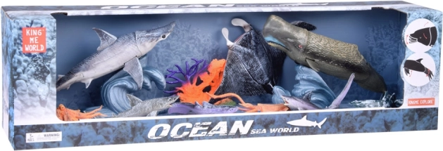 Im Set enthalten sind Manta, Pottwal, Hammerhai, Oktopus, Kalmar, mehrere Haiarten, ein Korallendekor sowie zwei Wellen zum Gestalten von Szenen.