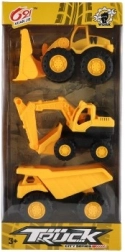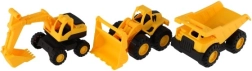 Bagger, Bulldozer und Kipper – eine komplette Mini-Baustelle in einer Verpackung für realistisches Spiel.