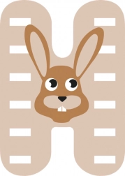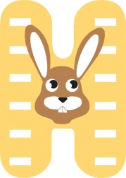 Das fröhliche und bunte Motiv mit Hase macht den Buchstaben H zu einem tollen Accessoire fürs Kinderzimmer.