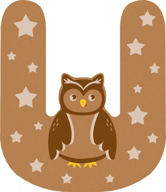 Der Holzbuchstabe U mit einem Motiv von Eulen und Sternen ist die ideale Dekoration für jedes Kinderzimmer. Hergestellt aus 100% FSC®-zertifiziertem Holz mit abgerundeten Kanten für eine sichere Berührung.