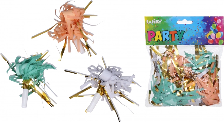 Sorgen Sie im Handumdrehen für Spaß – diese Partypfeifen aus Papier in Pastellfarben passen zu einer dezenten, eleganten Dekoration und harmonieren hervorragend mit weiteren Deko-Elementen in ähnlichen Tönen. Das Einweg-Design sorgt für eine unkomplizierte Vorbereitung und leichtes Aufräumen.