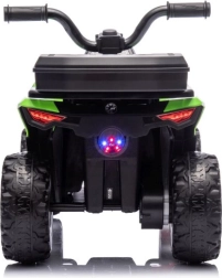 Der elektrische Mini-Quad GTS1155 in attraktivem Grün ist für kleine Entdecker konzipiert. Große, profilierte Räder meistern unebenen Untergrund und bieten gleichzeitig gute Stabilität. Dank des angenehm geformten Sitzes und des stabilen Lenkers lernen Kinder, das Fahren intuitiv zu beherrschen.