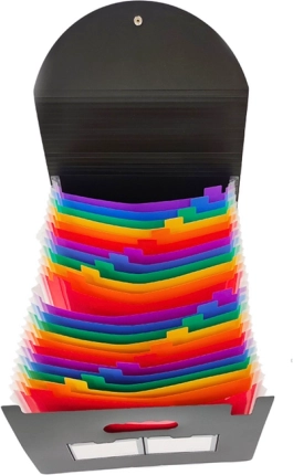 Pion-Organizer für Dokumente mit bunten Registerkarten und Taschen A4