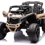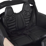 Das Offroad-Buggy für kleine Abenteurer setzt auf 4x4-Antrieb mit vier starken Motoren und Stoßdämpfern vorne und hinten. Weiche EVA-Reifen dämpfen Unebenheiten hervorragend und sorgen zusammen mit sanftem Start und Bremse beim Loslassen des Pedals für ein sicheres Fahrerlebnis. Für Komfort sorgen der ergonomisch geformte Sitz aus Ökoleder und Fünfpunktgurte.