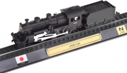 Detailiertes Modell der Dampflokomotive JNR C50 im Maßstab 1:160 mit realistischen Elementen von Karosserie und Fahrwerk auf einer Gleisbasis.
