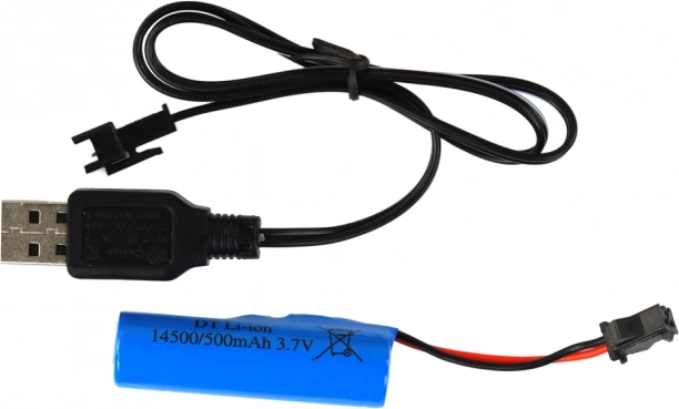 Inklusive 3,7 V 500 mAh Li-Ion-Akku und USB-Ladegerät. Ladezeit bis zu 2 Stunden, Fahrzeit bis zu 30 Minuten pro Ladung.