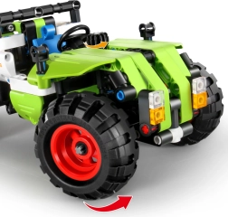 Der Bausatz ist für Kinder ab 6 Jahren geeignet. Dank der Variabilität und der klaren Kennzeichnung der Teile kommen sowohl Anfänger als auch Fortgeschrittene gut zurecht. Einfach die Schachtel öffnen und loslegen mit Geschichten aus der Welt der landwirtschaftlichen und geländegängigen Maschinen.