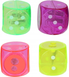 Praktischer Würfel-Spitzer für zwei Stift-Durchmesser mit integriertem Auffangbehälter für Späne. Kompakte Größe 4 × 4 × 4 cm, ideal für Federmäppchen und Schreibtisch. Erhältlich in 4 Farbvarianten und sorgt für sauberes, schnelles Spitzen ohne Unordnung.