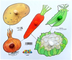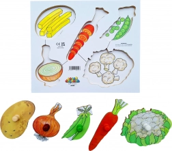 Dieses hölzerne Brettspiel-Puzzle ist so konzipiert, dass es Kindern nicht nur ganzes Gemüse, sondern auch in geschnittener Form vorstellt. Die Kinder können die einzelnen Teile dank der kleinen Griffe leicht greifen und lernen, das richtige Gemüse seinen geschnittenen Versionen zuzuordnen. Produkteigenschaften: