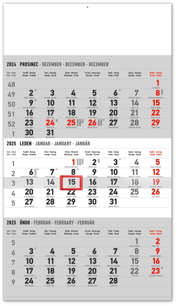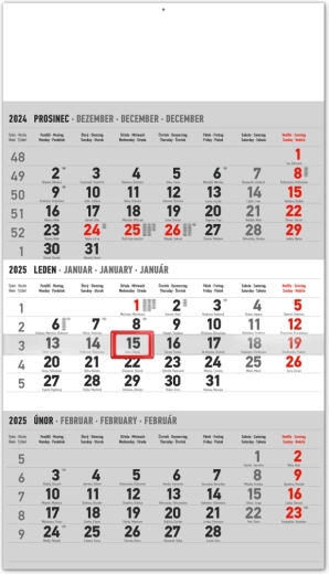 Entdecken Sie den praktischen Wandkalender mit einer 3-Monatsübersicht im modernen grauen Design. Optimal für die Planung und Organisation Ihrer Termine mit einem markanten Schieberegler für schnelle Referenz.