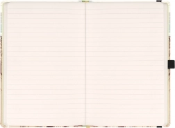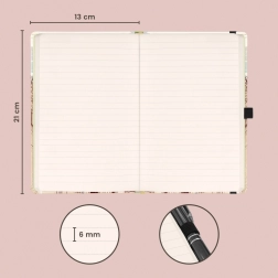 Elegantes linierts Notizbuch mit festem Einband und praktischem Gummibandverschluss. Es bietet eine Stiftschlaufe, eine innere Tasche für Kleinigkeiten und 172 punktierte Seiten auf gelbem Papier für Ihre Ideen, Tagebucheinträge und Arbeitsnotizen.