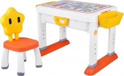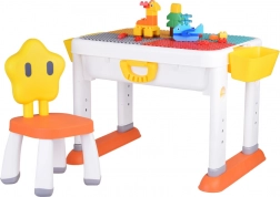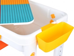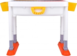 Entdecken Sie ein praktisches Kinderset, das mit Ihrem Kind mitwächst. Der 3-in-1-Tisch bietet zwei Funktionsflächen – eine Seite mit Noppen für Bausteine und eine glatte Seite zum Schreiben, Zeichnen, Spielen und Essen. Dank der verstellbaren Beine (bis ca. 57 cm) passt er sich leicht dem Alter des Kindes an, während seitliche Taschen Stifte, Bausteine oder Kleinigkeiten stets griffbereit halten.