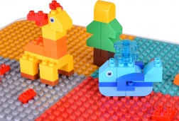 Eine Seite mit Noppen für die Bausteine, die andere glatt zum Zeichnen, Lernen und für Brettspiele – alles an einem Platz.