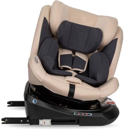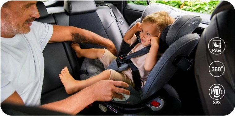 Einzigartig ist die drehbare Basis des Kindersitzes, die eine einfache Einstellung entgegen der Fahrtrichtung (RWF) sowie in Fahrtrichtung (FWF) ermöglicht. Der Sitz ist mit einem ISOFIX-System mit Indikator für die richtige Montage und einem Tether-Gurt für noch mehr Sicherheit ausgestattet.
