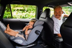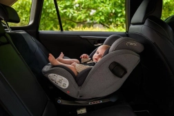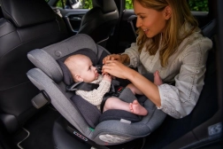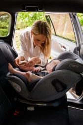Der MoMi EMI bietet eine 360° Drehung, die eine einfache Installation entgegen und in Fahrtrichtung ermöglicht. Er umfasst seitliche Schutzvorrichtungen SIPS, 11 Positionen der Kopfstütze und 6 Neigungsstufen für maximalen Komfort und Sicherheit. Zusätzliche Sicherheit bietet das Befestigungssystem TOP TETHER.