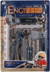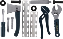 Das Set enthält ca. 13 Werkzeuge wie Schlüssel, Zangen und Schraubendreher, die Kinder verwenden können, um echte Reparaturarbeiten zu simulieren.