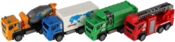 Die Kollektion von Plastik-LKWs mit einer Länge von 15 cm bietet verschiedene Modelle für den Spielspaß der Kinder. Wählen Sie aus einer bunten Auswahl von vier Arten, einschließlich Bau- und Transportfahrzeuge. Die Spielzeuge haben einen Rückzugmechanismus und sind für Kinder ab 3 Jahren geeignet.