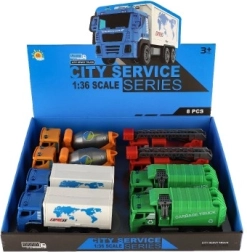 Wählen Sie aus vier Typen von LKWs, einschließlich Betonmischer, Müllwagen, Feuerwehrauto und Transportfahrzeug.