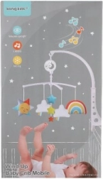 Kinder-Karussell über dem Bettchen mit bunten Spielzeugen ist der ideale Helfer beim Einschlafen des Babys. Mit seinen sanften Farben und der angenehmen Melodie trägt es zu einem ruhigen Einschlafen bei.