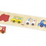 Dieses hochwertige Holzpuzzle mit vier Fahrzeugen (Feuerwehrauto, Taxi, Krankenwagen und Polizeiauto) ist eine hervorragende Wahl für erste Logikspiele. Teile mit praktischen Knopfgriffen erleichtern die Handhabung und motivieren Kinder zum wiederholten Einsetzen und Entdecken.