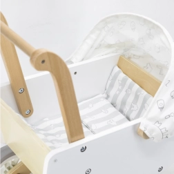Der niedliche Holzpuppenwagen der Marke VIGA vereint hochwertiges Holz, modernes Design und Sicherheit. Dank der rutschfesten EVA-Räder ist er stabil und geeignet für Kinder ab 18 Monaten. Das textile, verstellbare Verdeck rundet den eleganten Look ab und fördert Rollenspiel sowie die Entwicklung der Fantasie.