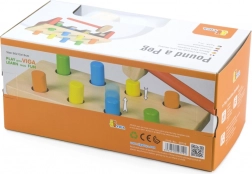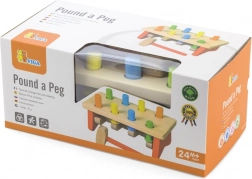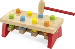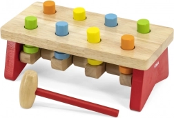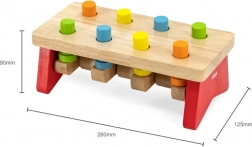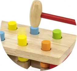 Die stabile Bank, feste Stifte und der angenehm geformte Hammer aus Naturholz sorgen für sicheres und langanhaltendes Spielvergnügen. Das Spielzeug unterstützt zudem das Erkennen von Farben sowie das Verständnis von Ursache und Wirkung.