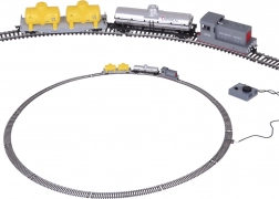 Metallschienen mit Kunststoffschwellen, Einspeisebogen und Steuereinheit mit Netzbetrieb. Vorwärts/rückwärts, STOP und stufenlose Geschwindigkeitsregelung.