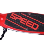 Genießen Sie eine spaßige und sichere Fahrt mit dem Elektroroller für Kinder. Farbige LED-Streifen an den Seiten des Decks und ein weißes Frontlicht erhöhen die Sichtbarkeit, während die breite rutschfeste Standfläche mit dem Schriftzug SPEED zusätzliche Stabilität bietet. Einfach den Auslöser am rechten Griff drücken und sanft losfahren – beim Loslassen aktiviert sich die elektrische Bremse.