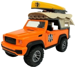 Auf zu imaginären Ausflügen in die Natur mit dem Camping‑Auto JEEP in Orange und dem stylischen gelb‑grauen Kajak. Dank Licht und Sound wirkt die Fahrt realistisch, öffnende Türen und Heckklappe laden zur Erkundung des Innenraums ein, und die Gummireifen kommen mit unterschiedlichsten Untergründen im Kinderzimmer zurecht.